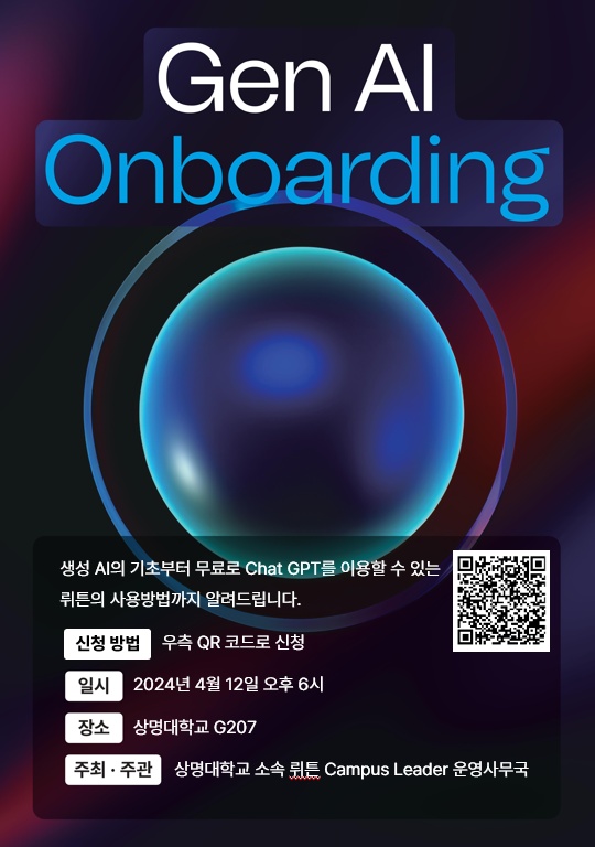 - 📢 뤼튼테크놀로지스 - Gen AI 아이디어 톤 개최 (04/12 교내 온보딩 세미나 : 사전 설명 및 회사 소개_G207 오후 6시 )