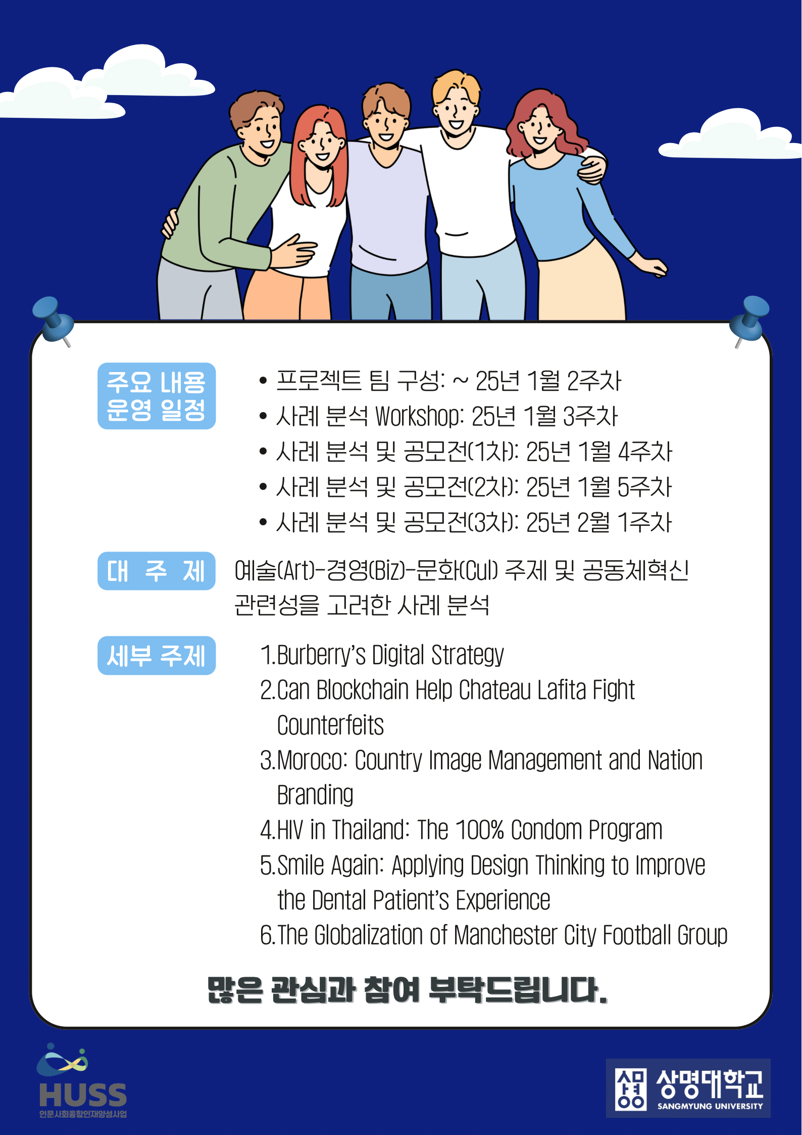 상명 [비교과] [HUSS 인문사회 융합인재양성사업단] 인문사회융합인재양성사업(HUSS) ‘피어오름 2024’ 프로그램 안내 -